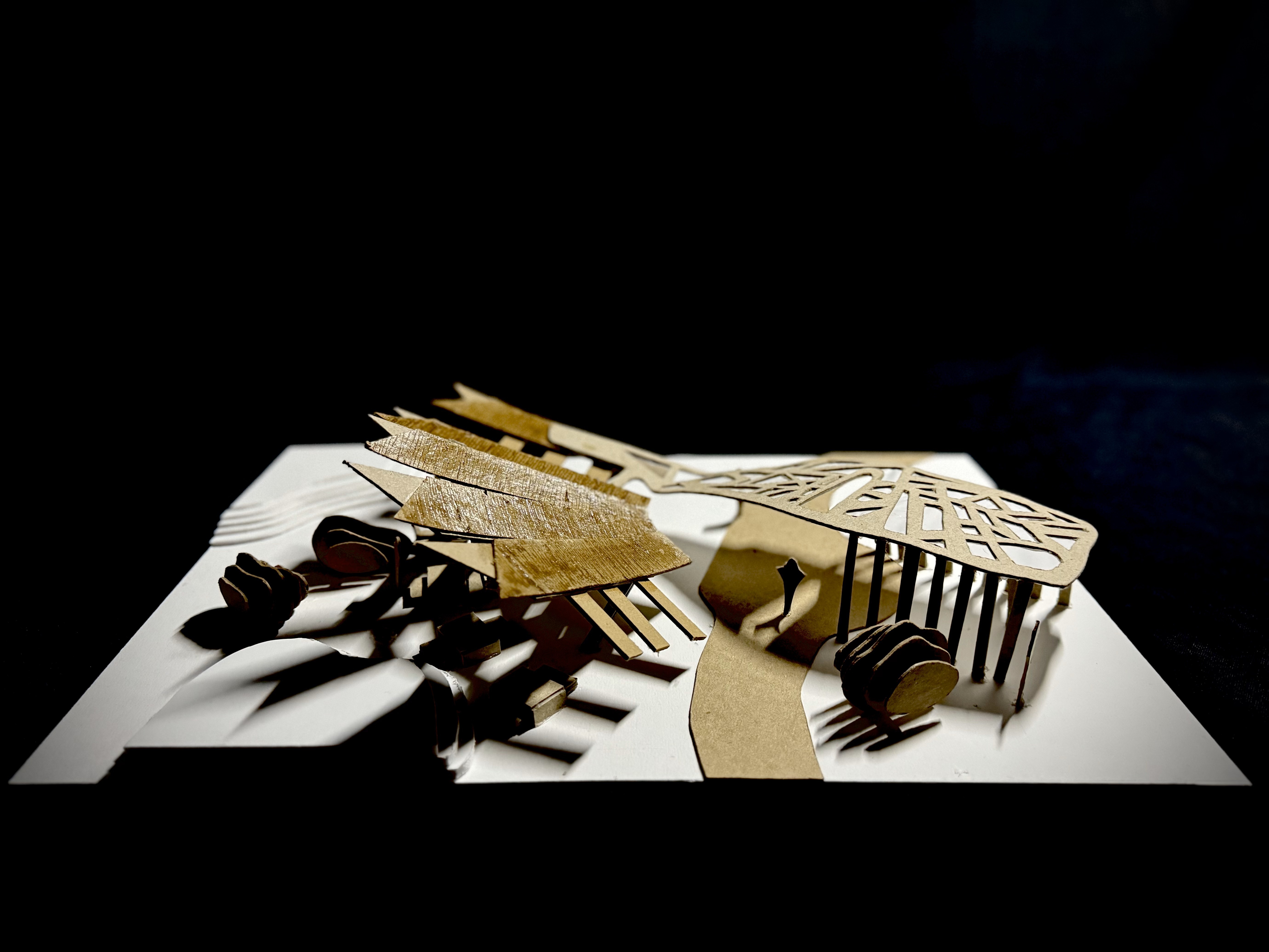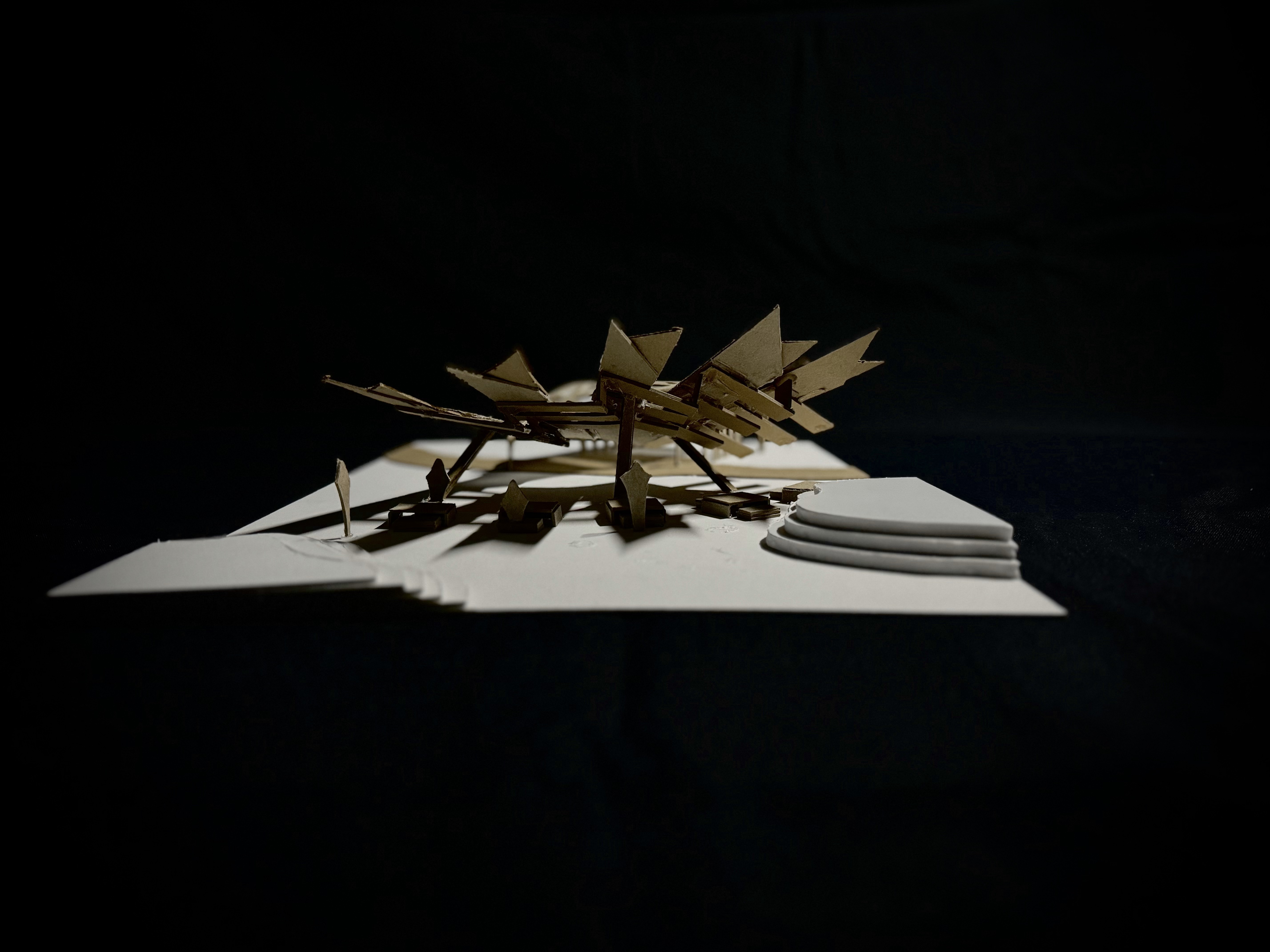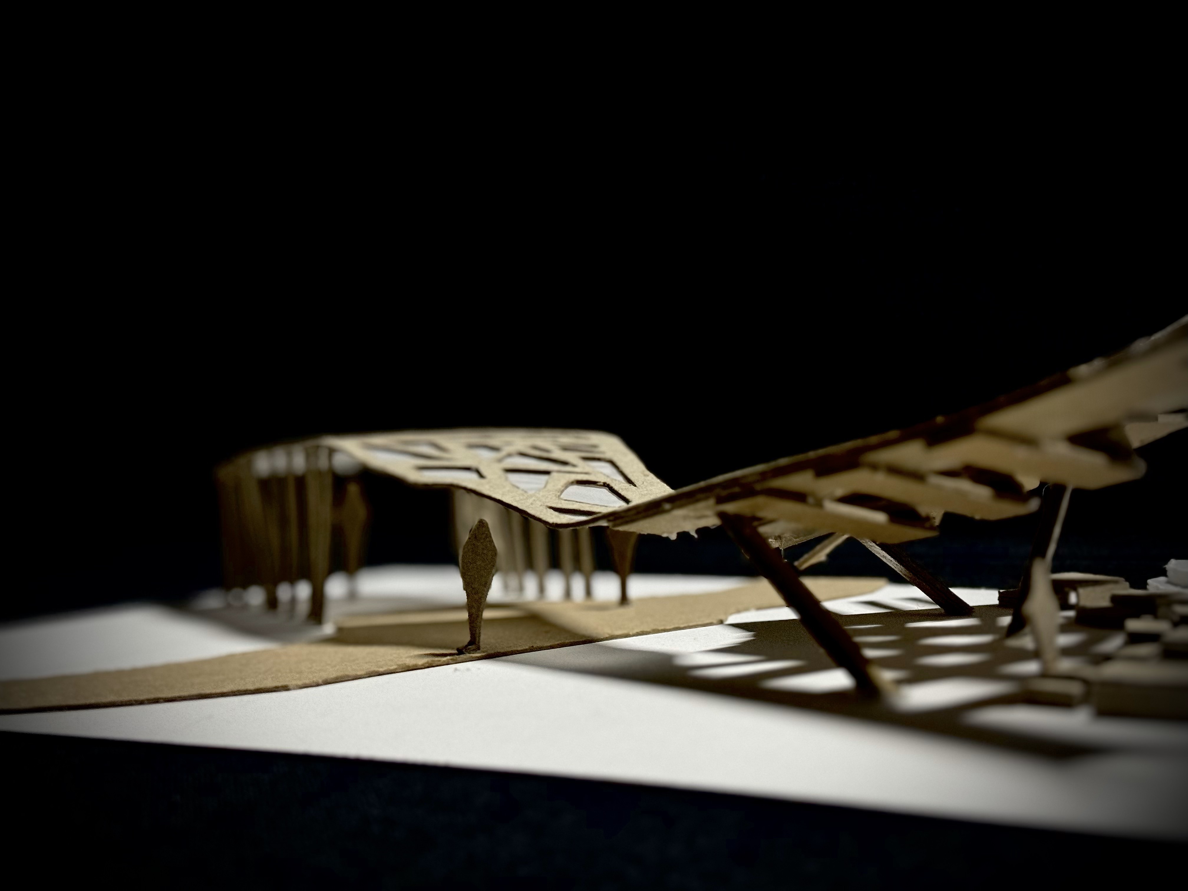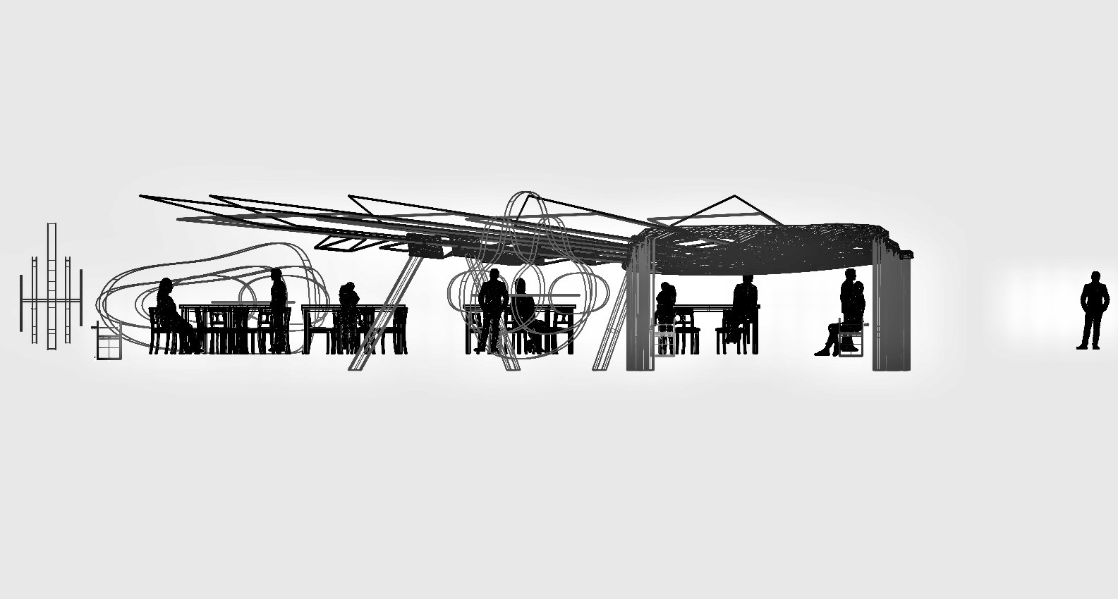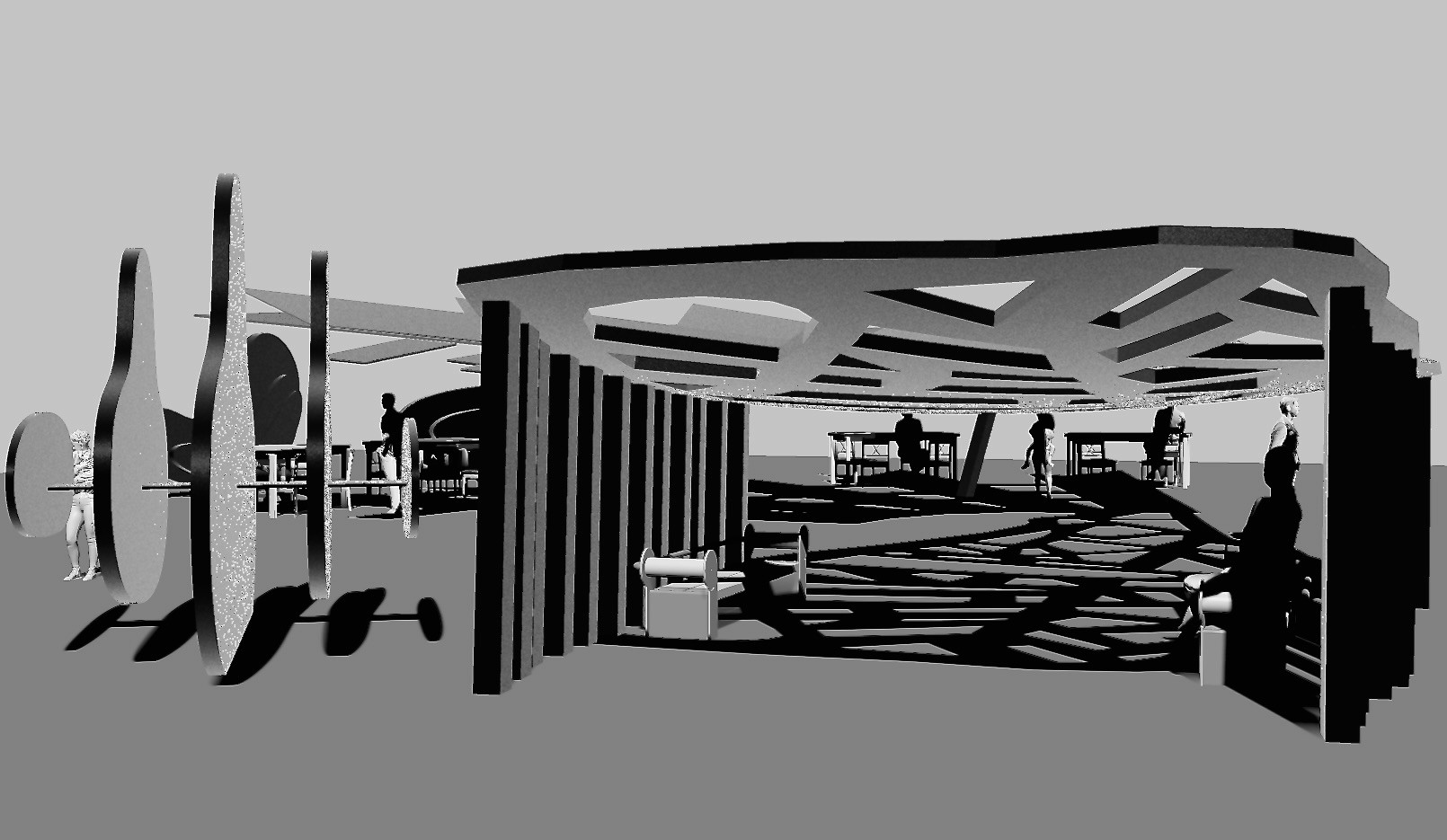 The Pavilion you are viewing is a design I fabricated from the ancient design of a sundial. As its name suggests, it can provide the time of day using the shadow provided by the object interfering with the sun’s rays. The Solar Pavilion is able to provide the time of day year round. The sundial in this project is located in the organically shaped canvas mesh which has one part that is not shaded. Therefore creating a pointer with a clock below it signaling the time of day. The seating underneath the pavilion has also been designed with the seating in mind, as the shadow rotates about the pavilion the seating is carefully placed so as to be protected from direct rays of the sun.